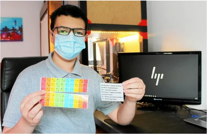 Le lycéen, inscrit en 1e STI2D à Saint-Brieuc, est l’inventeur d’un kit pour clavier d’ordinateur visant à faciliter la vie des personnes atteintes de troubles DYS (dyslexie, dysorthographie, etc.). Un kit au principe simple : des surtouches de couleur à coller sur le clavier pour mieux repérer les lettres et être plus rapide.
