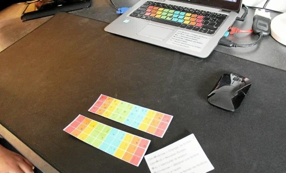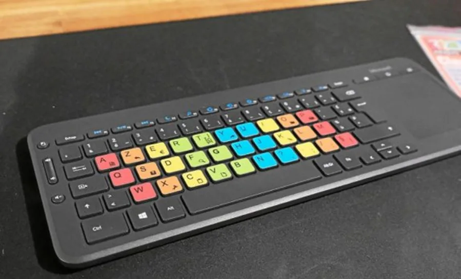 Une technique souvent recommandée par les ergothérapeutes, n’a pas de solution dans le commerce. Il s’agit du simple fait de mettre des couleurs sur les touches d’un clavier d’ordinateur.