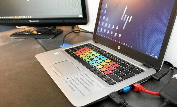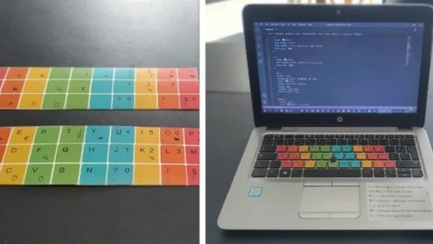 Le kit imaginé par Ryann consiste en des surtouches de couleur à coller sur le clavier pour mieux repérer les lettres et être plus rapide. (Le Télégramme/Julien Molla)
